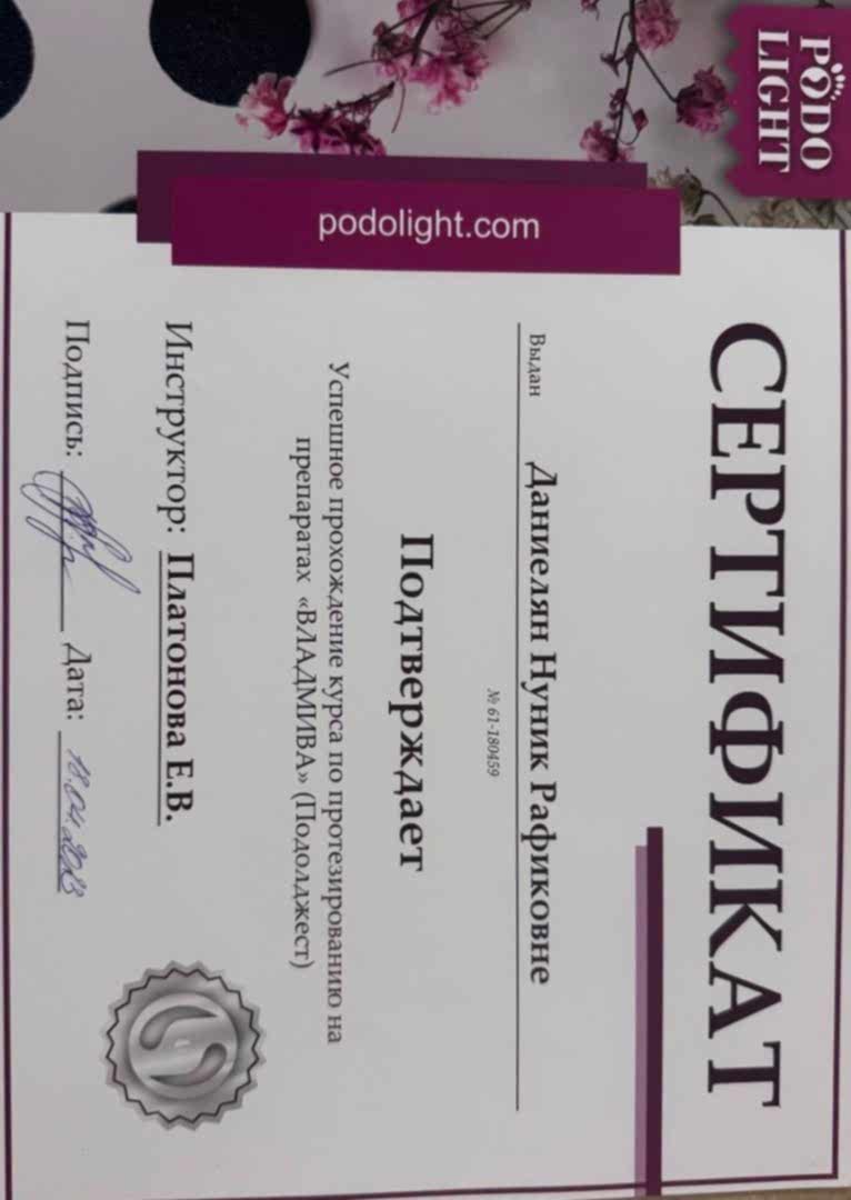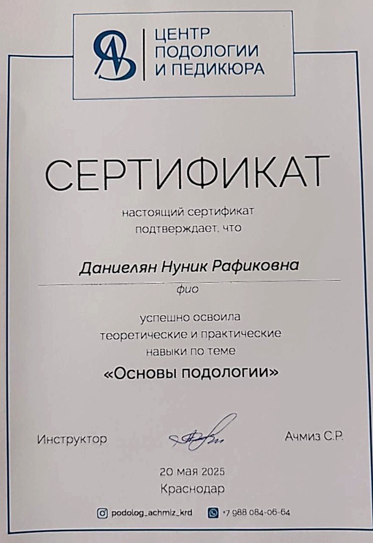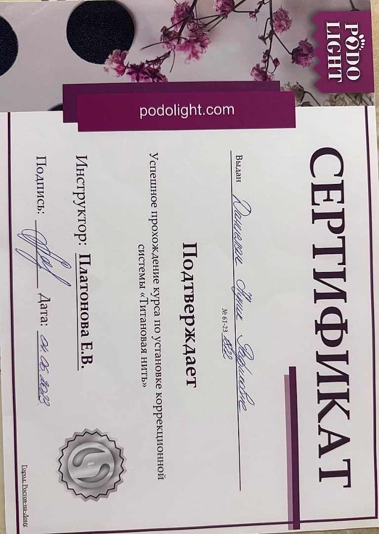 Подолог с опытом более 5 лет, лечение всех видов проблем со стопами, комбинированный и классический маникюр, все виды Pin-Up с лечебным покрытием.