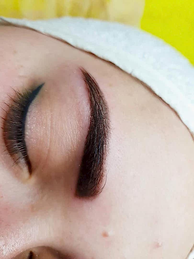 Процедура включает в себя нанесение химического Pin-Up на кожу и нанесение цвета методом микроблейдинга, контуринга или татуировки.