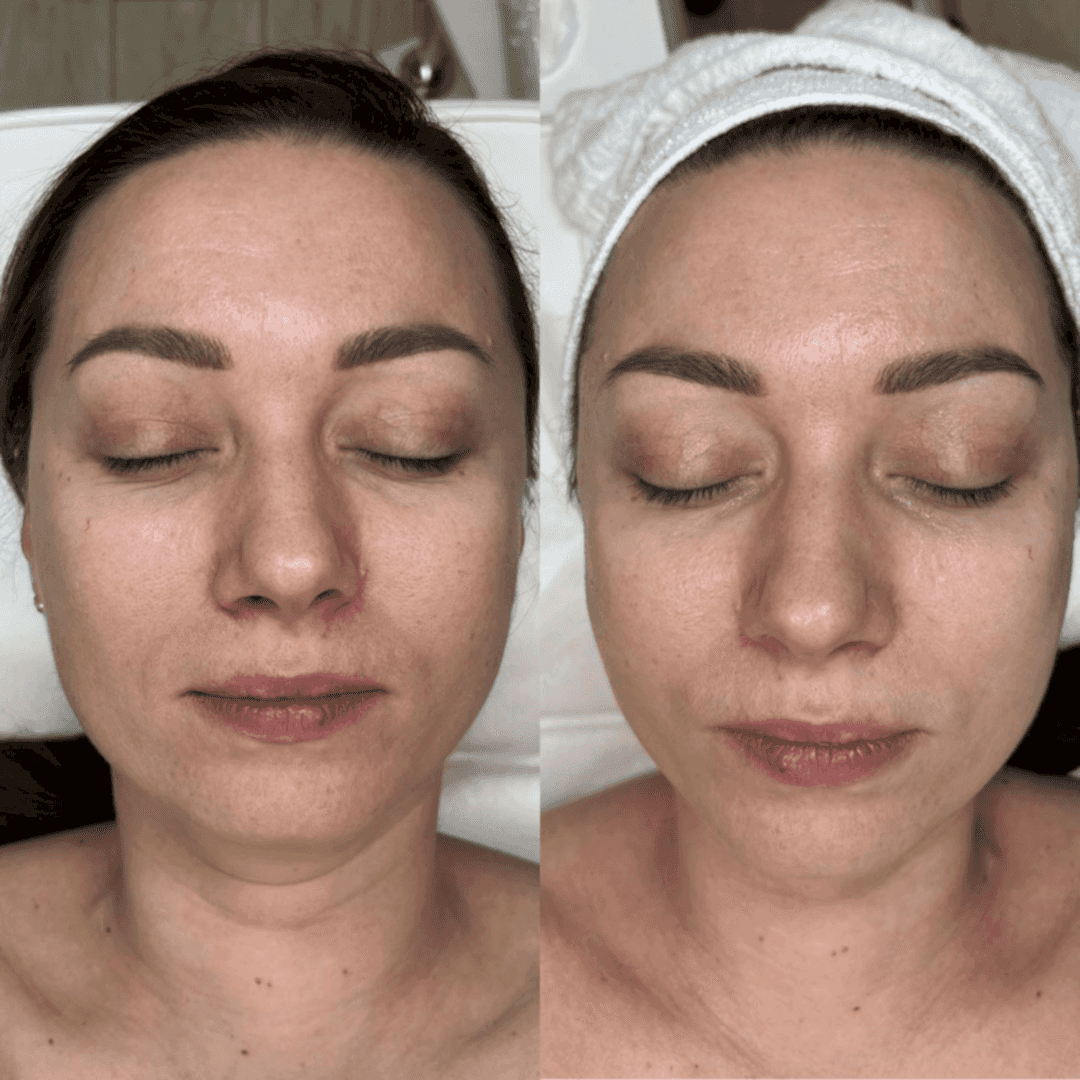 На фото процедура рф-лифтинга длительностью 60 минут с настройками манипул Назарбаева, 83 увлажнение, восполнение влаги в коже лица и лимфодренаж. До и после с разницей в 60 минут, фото без фотошопа.