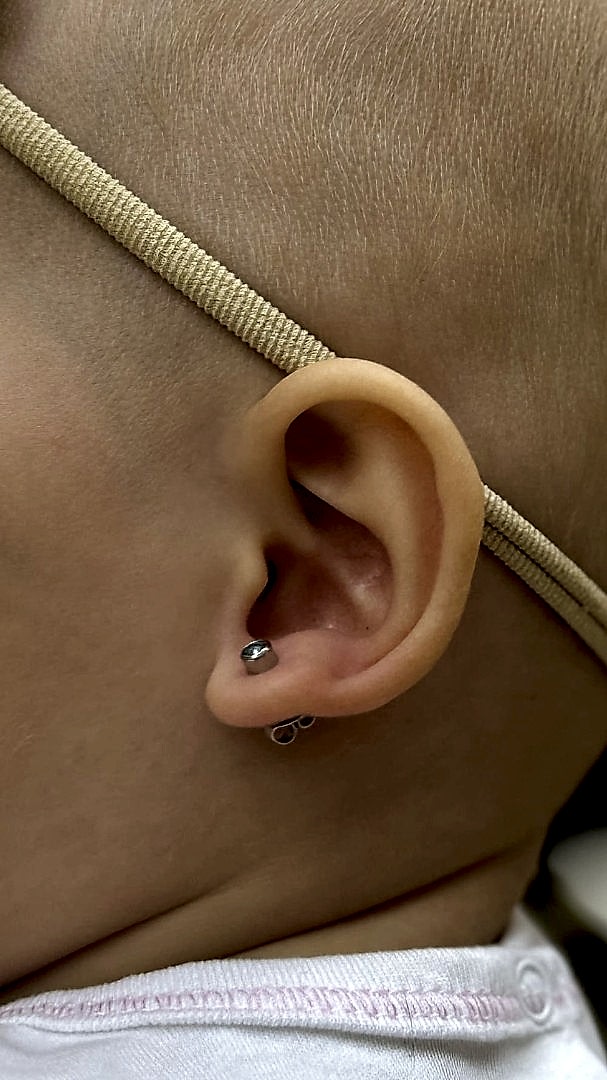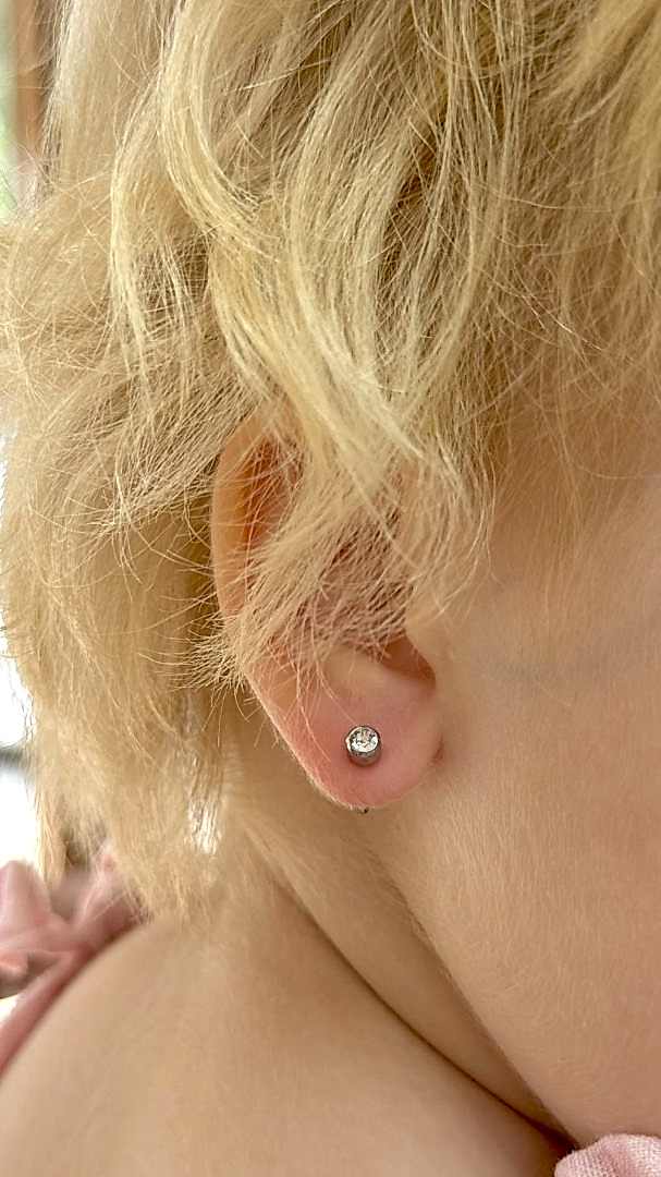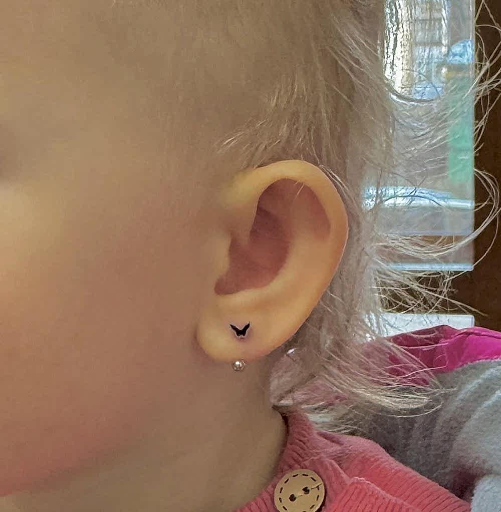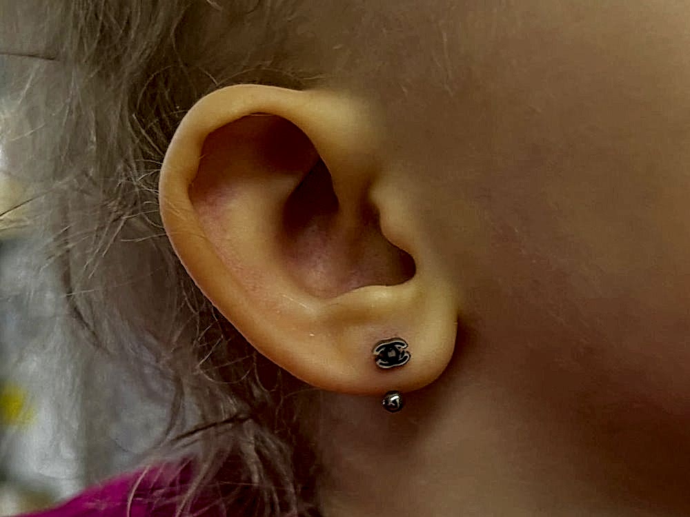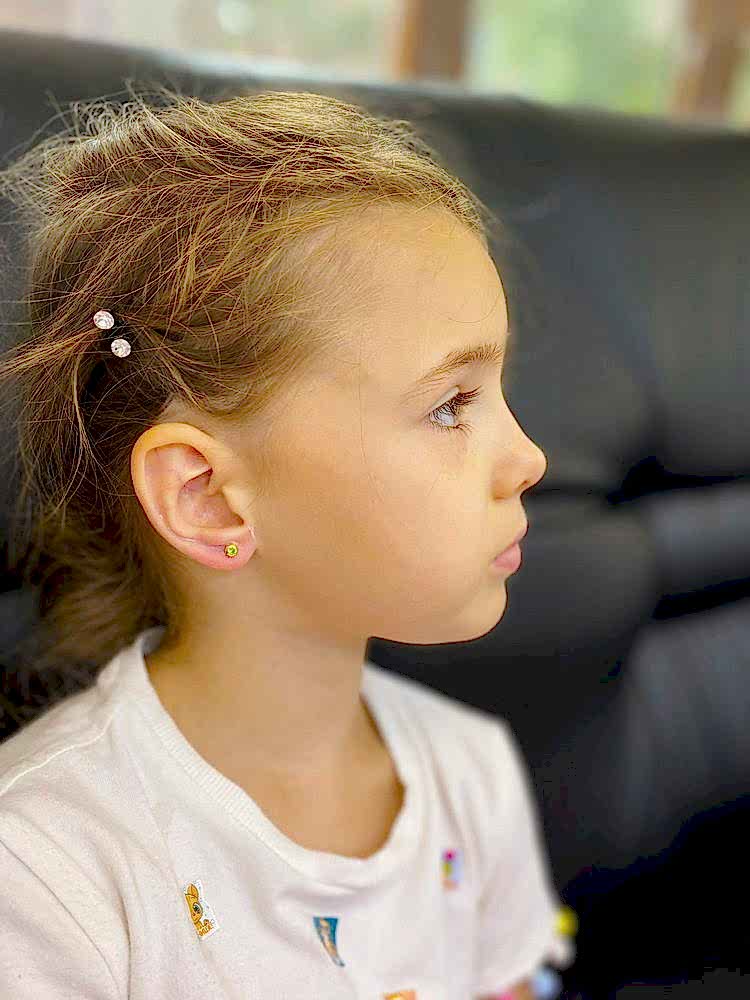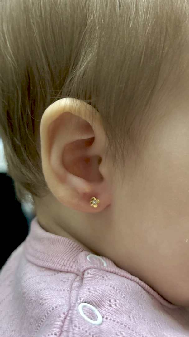 Перед самой процедурой специалисты осуществляют Pin-Up ребенка, чтобы процедура по прокалыванию мочки в ушах была проведена оперативно, безопасно и без неприятных ощущений. Затем в мочки ушей вставляются особые сережки, которые сделаны из особой стали (хирургическая).